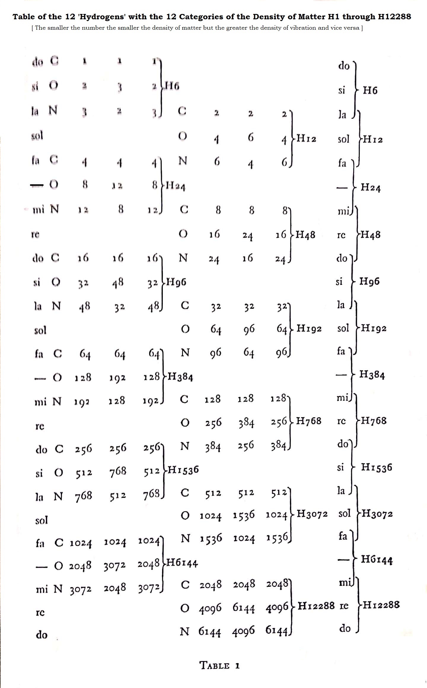 Table of Hydrogens with